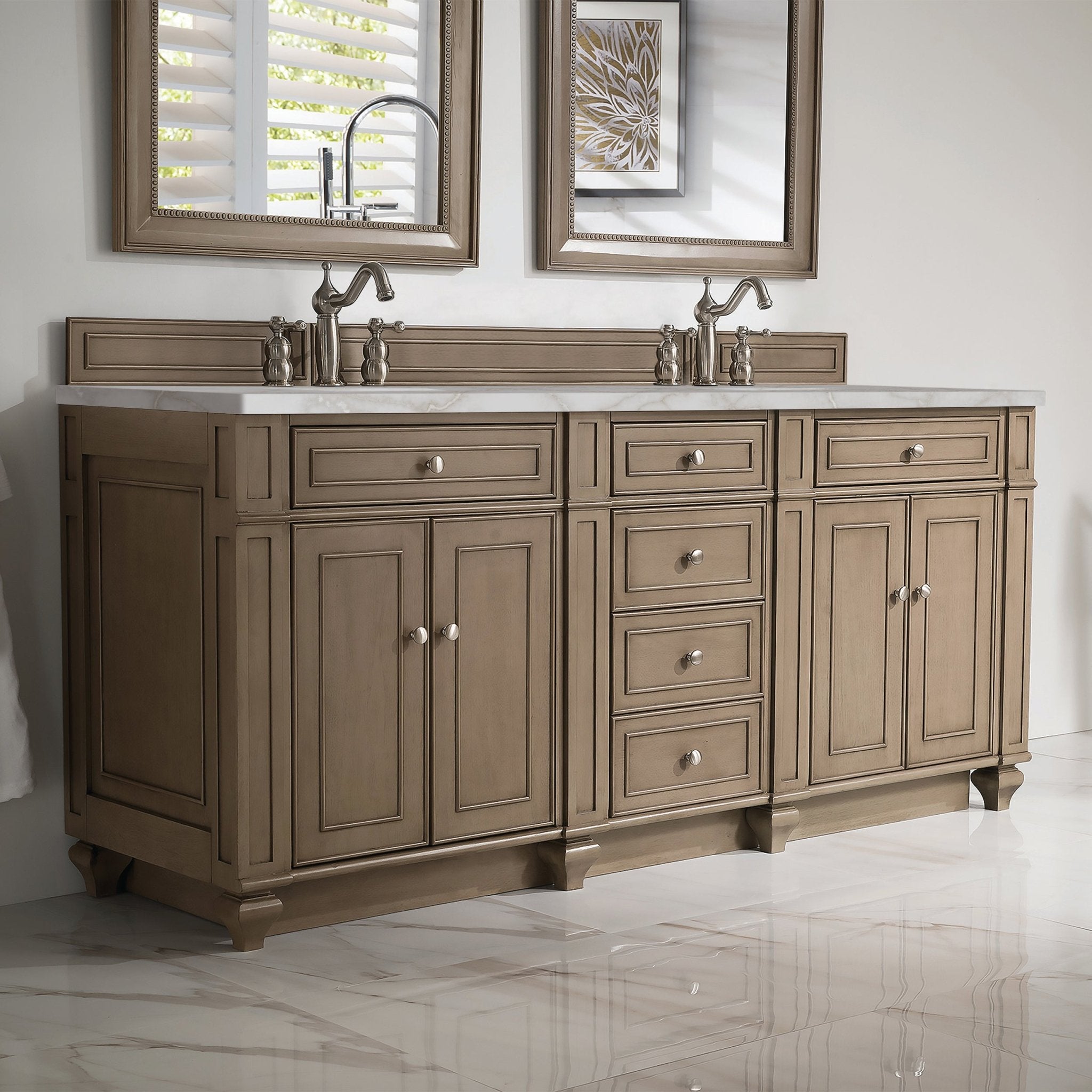 James Martin Vanities Bristol 72" Double Vanity, Whitewashed Walnut w/ 3 CM Victorian Silver Quartz Top 157-V72-WW-3VSL – Origins of Home
