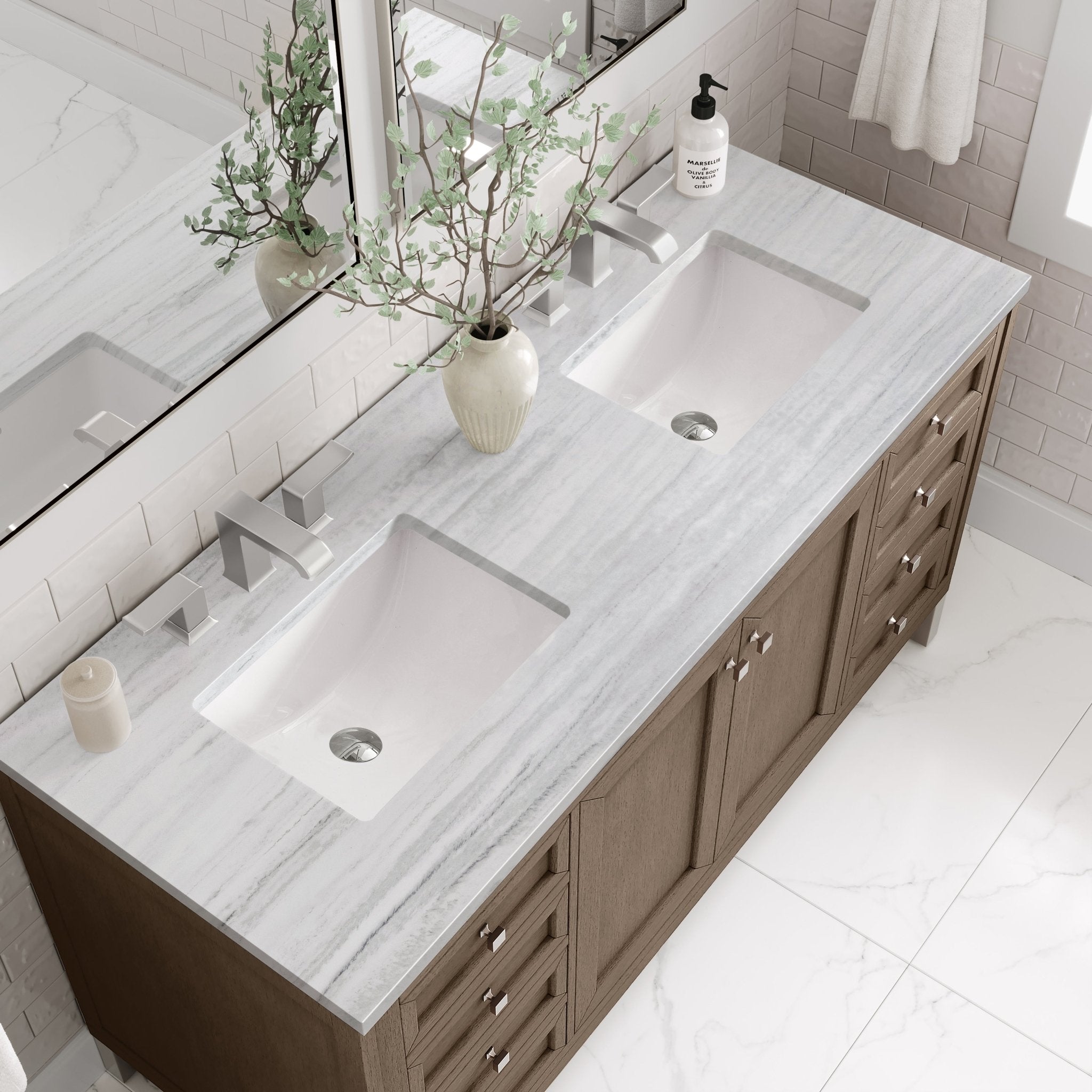 James Martin Vanities Chicago 60" Double Vanity, Whitewashed Walnut w/ 3 CM Arctic Fall Solid Surface Top 305-V60D-WWW-3AF – Origins of Home
