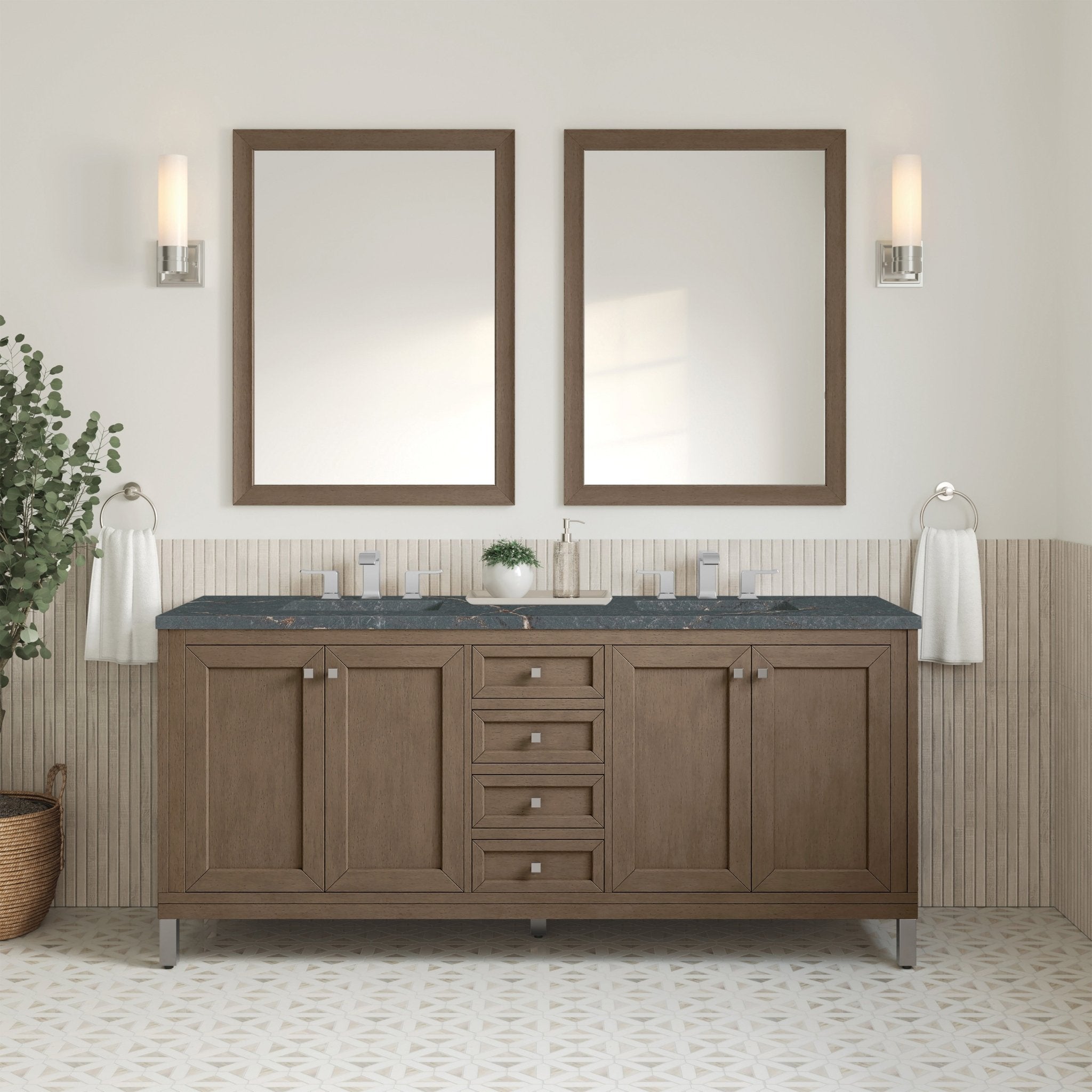 James Martin Vanities Chicago 72" Double Vanity, Whitewashed Walnut w/ 3 CM Parisien Bleu Quartz Top 305-V72-WWW-3PBL – Origins of Home