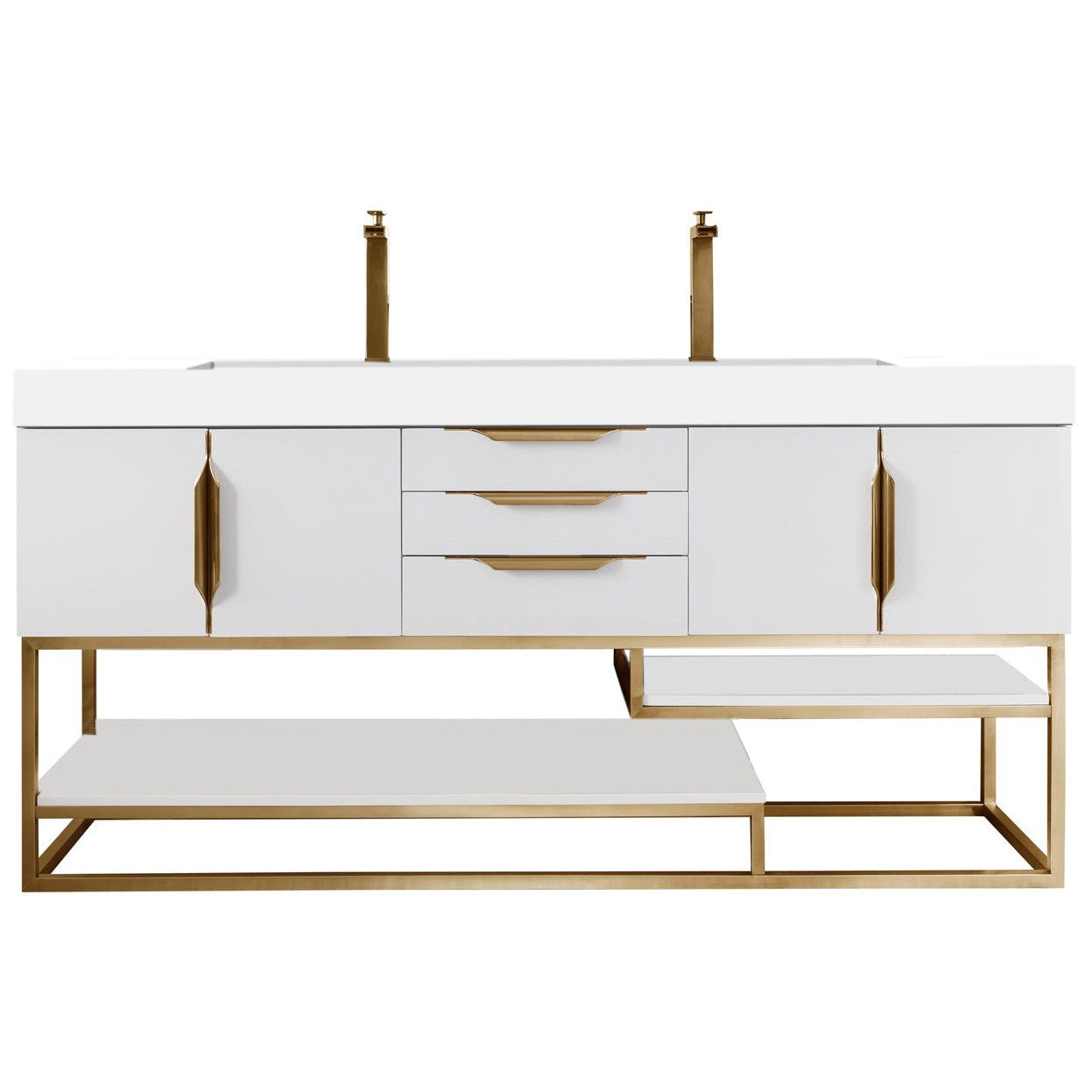 James Martin Vanities Columbia 72" Double Vanity, Glossy White, Radiant Gold w/ Glossy White Composite Stone Top 388-V72D-GW-RG-GW – Origins of Home