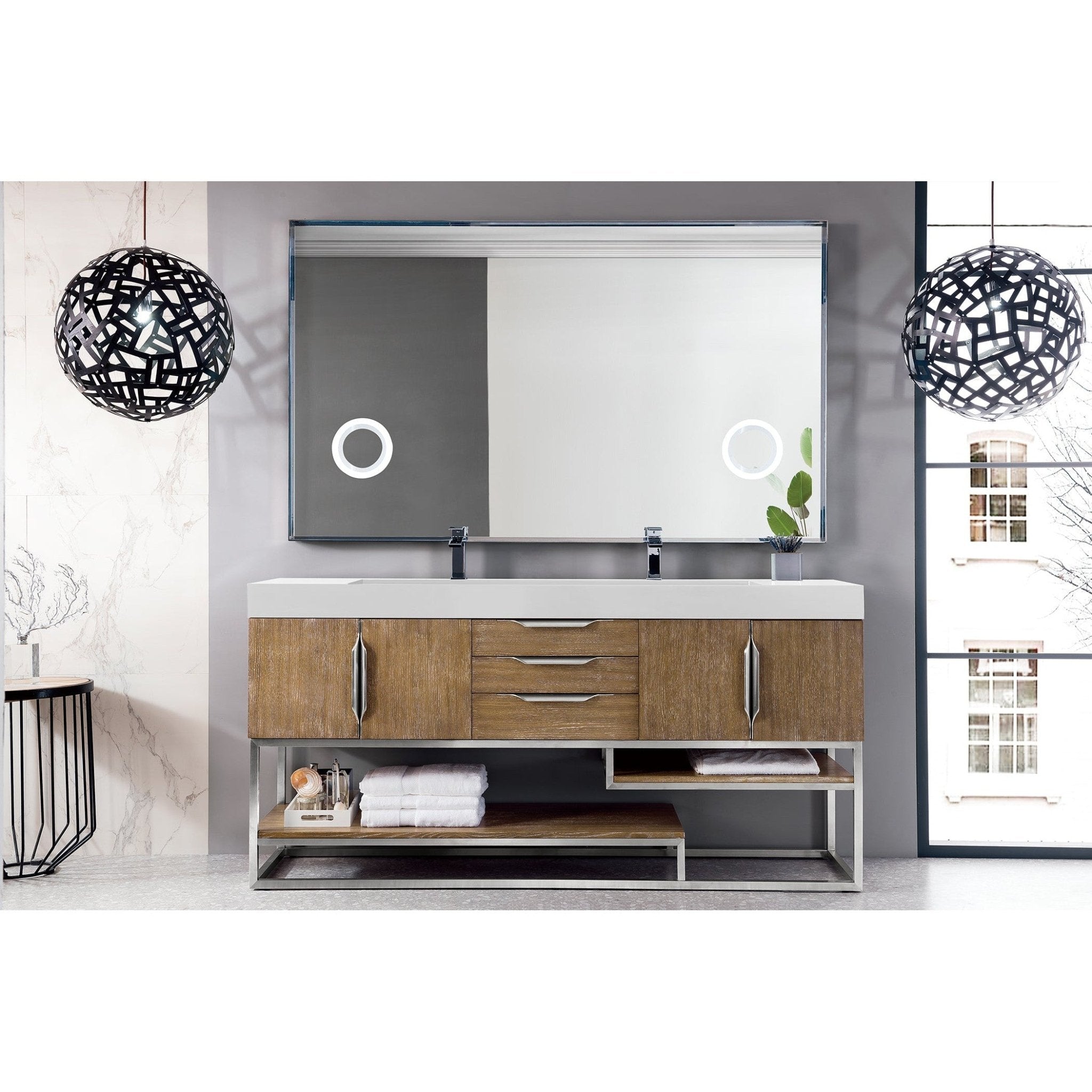 James Martin Vanities Columbia 72" Double Vanity, Latte Oak w/ Glossy White Composite Stone Top 388-V72D-LTO-BN-GW – Origins of Home