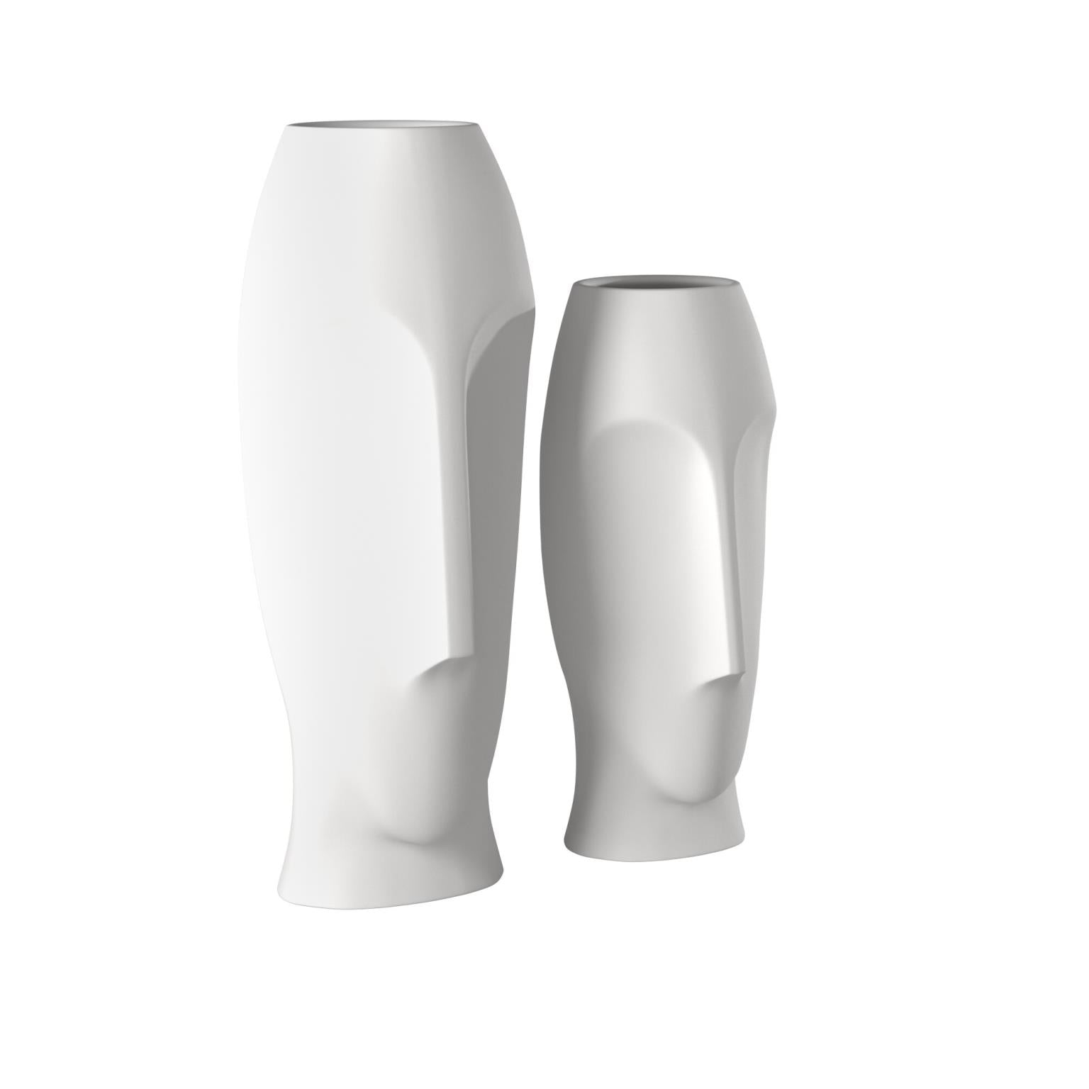 Abstract Faces Matte White Ceramic Vases -Set of 2