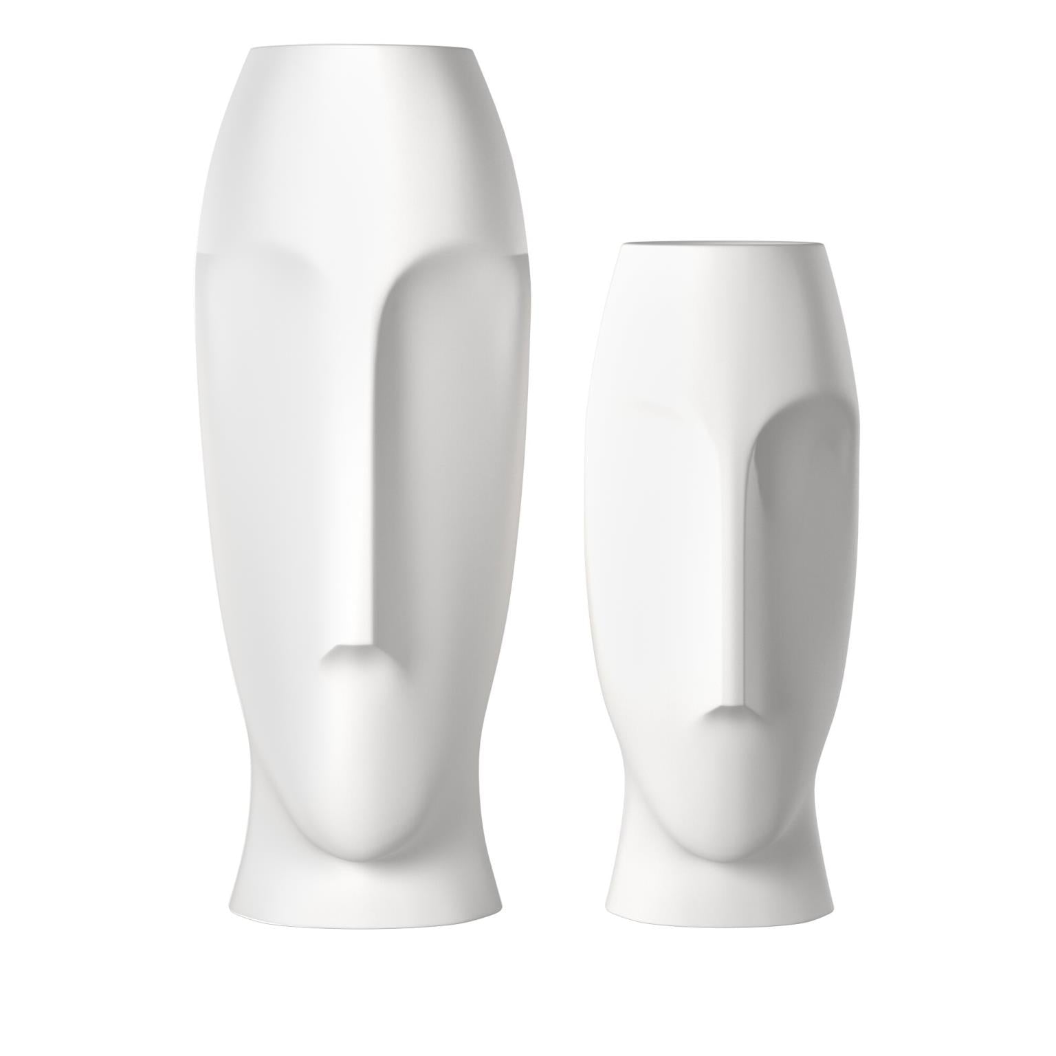 Howard Elliott Abstract Faces Matte White Ceramic Vases -Set of 2 34094 – Origins of Home