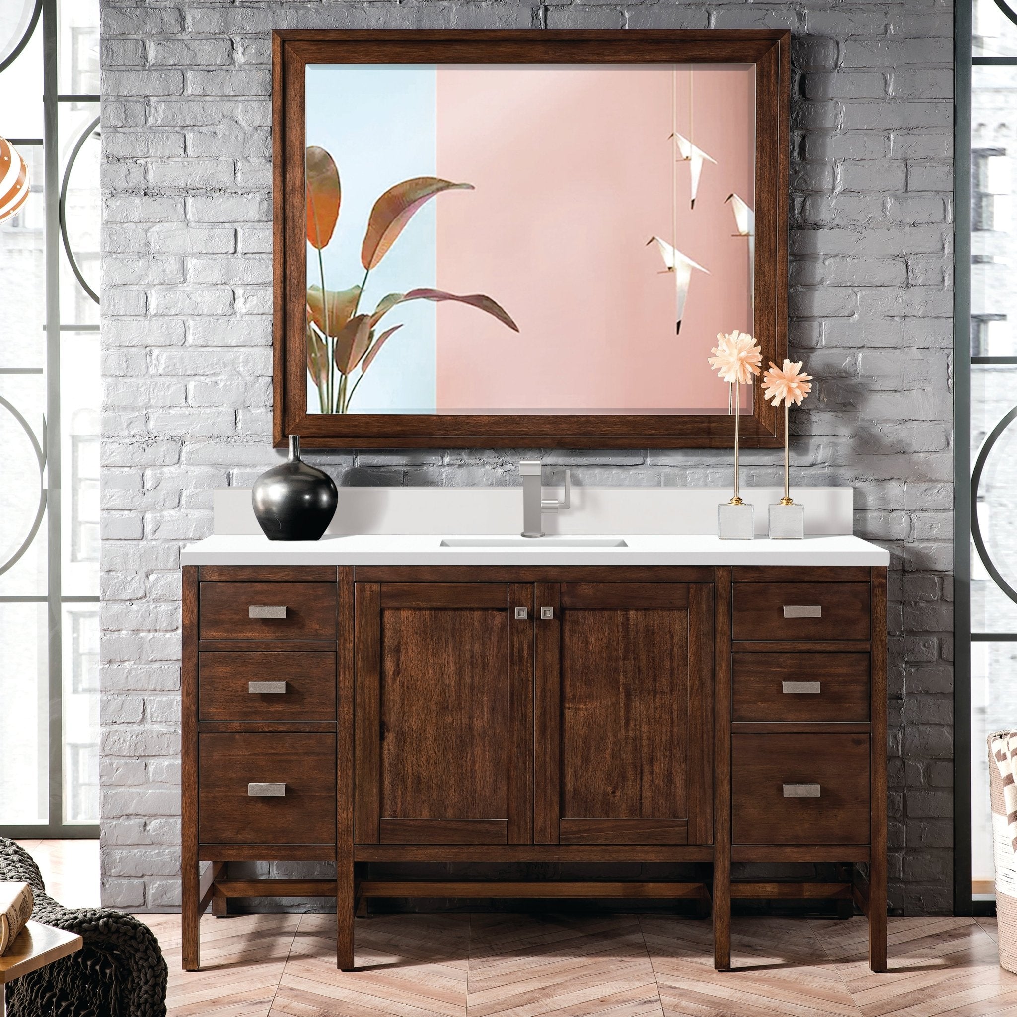James Martin Vanities Addison 60" Single Vanity, Mid-Century Acacia w/ Single Hole 3 CM White Zeus Quartz Top & Backsplash E444-V60S-MCA-1WZ – Origins of Home