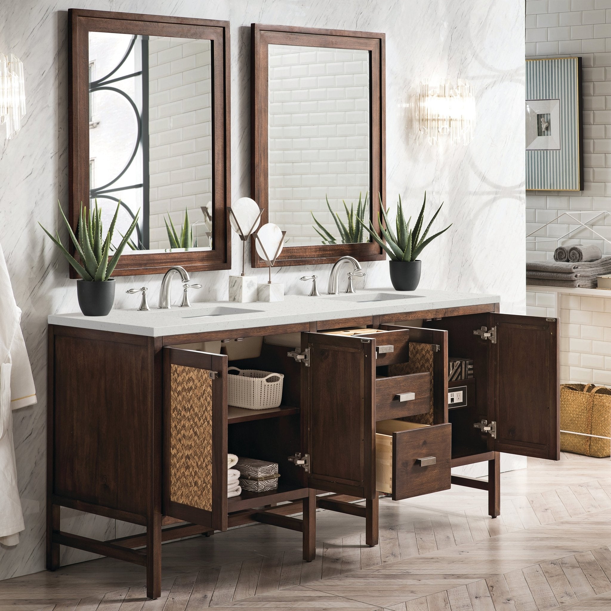 James Martin Vanities Addison 72" Double Vanity, Mid-Century Acacia w/ 3 CM Lime Delight Quartz Top E444-V72-MCA-3LDL – Origins of Home