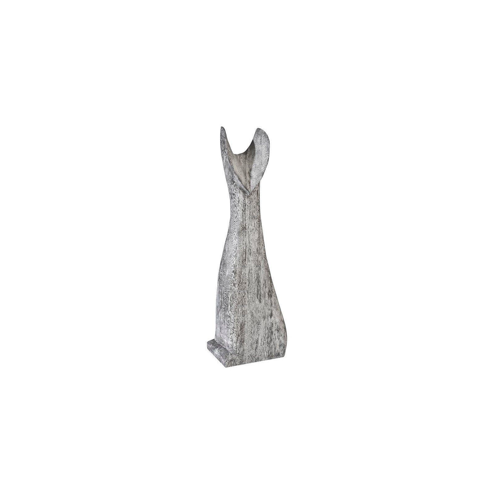 Cat Sculpture, Small, Chamcha Wood, Gray Stone Finish