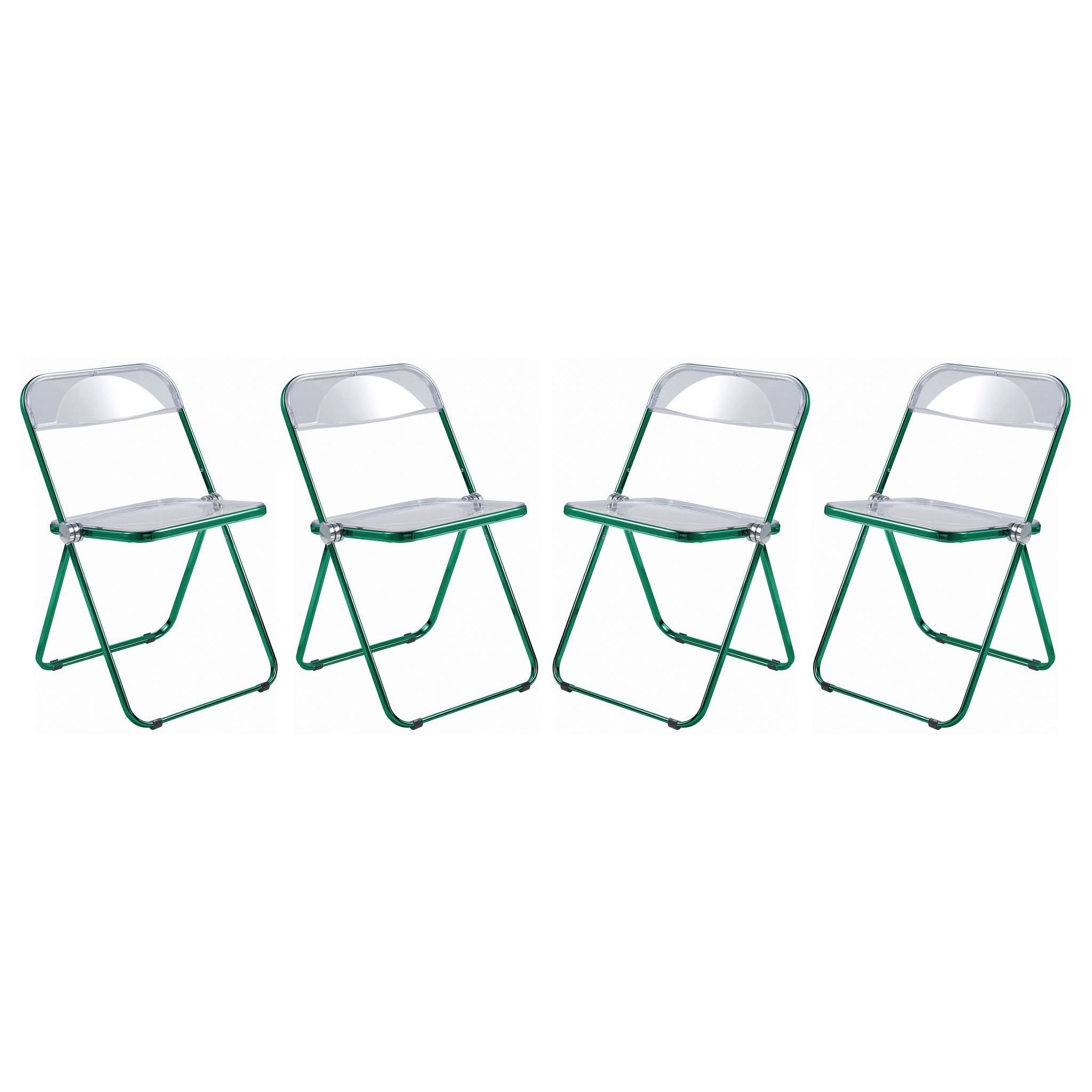 LeisureMod Lawrence Acrylic Folding Chair With Orange Metal Frame, Set of 4 LFCL19OR4 – Origins of Home